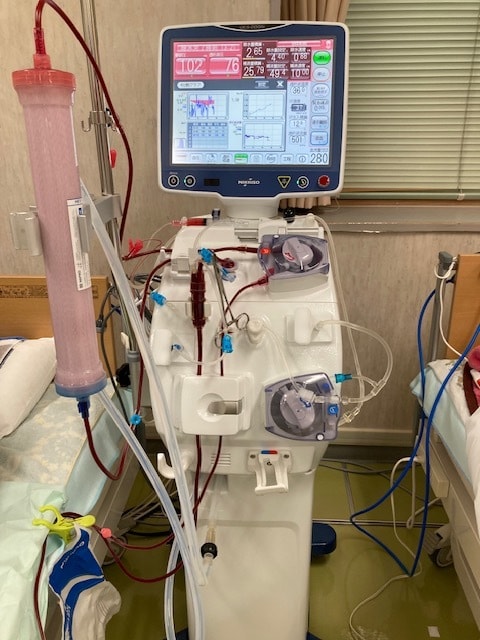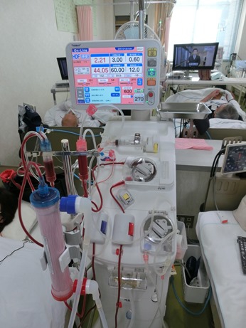 多人数用透析液供給装置に東レ社製:TC-HI、TC-Rの2台、患者監視装置には同じく東レ社製:TR-3300、TR-3000MA、TR-3000Mなど計31台設置