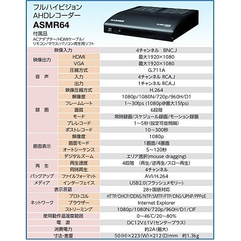 マスプロ フルハイビジョンAHDカメラ・レコーダー カメラ本体と録画装置、ケーブル類などを合計しても、設置するカメラの台数にもよりますが導入費用は10万円程です。透析装置の部品代より安いですね。