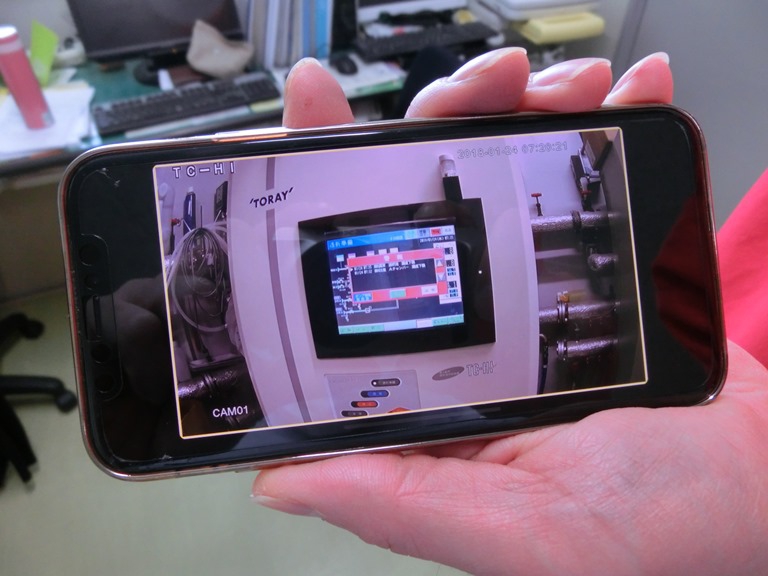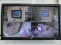 方法はまずAHDカメラを4台設置し、専用のレコーダー(4ch)に接続、それを当院のネットワークに接続することでAHDカメラの動画映像を外出先でリアルタイムにスマートフォンで閲覧できるようにしました。次に透析装置の異常検知・通知は、レコーダーのモーション設定による動体検知時のアラーム設定を活用しました。動体検知方法は一画面を192分割されたエリアから監視ポイントを部分的に選択できます。今回は装置の警報ブザー出力から並列にLEDを設置してそこを監視ポイントに設定しました。警報発生時LEDが点灯し、動体監視がそれを検知する仕組みです。アラーム出力方法はEmail送信を活用、当院のメールサーバを介してME3名のスマートフォンに即座にエラーメッセージを送信します。メールを受け取ったら装置の異常状況をスマートフォンで動画映像を確認し、警報内容も画面から読み取ることが可能(高画素の恩恵)、そして緊急来院し速やかに対応します。